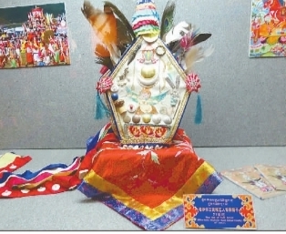 西藏博物馆馆藏的《格萨尔》说唱艺人佩戴的专用帽子。光明图片/视觉中国