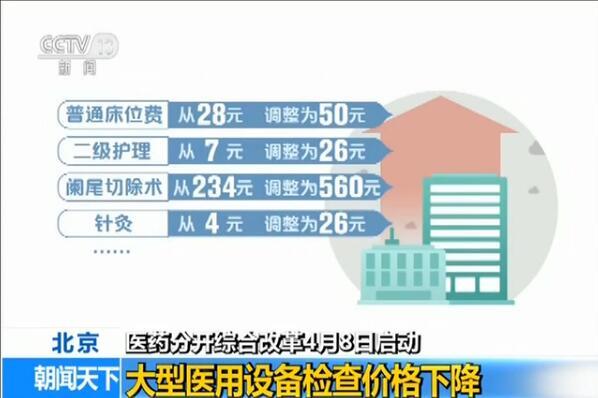 此次改革提高了中医、护理、手术等体现医务人员技术劳务价值、技术风险大的项目价格。比如普通床位费从现行28元调整为50元,二级护理从7元调整为26元,阑尾切除术从234元调整为560元,针灸从4元调整为26元等。
