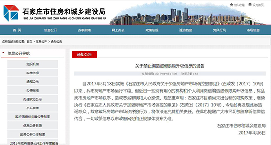 4月6日下午,针对该消息,石家庄市住建局发布辟谣通告,否认了该消息的真实性。