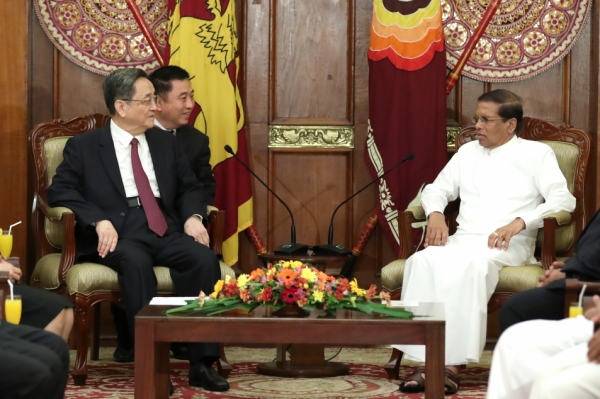 这是4月7日,俞正声在科伦坡会见斯里兰卡总统西里塞纳。新华社记者马占成摄