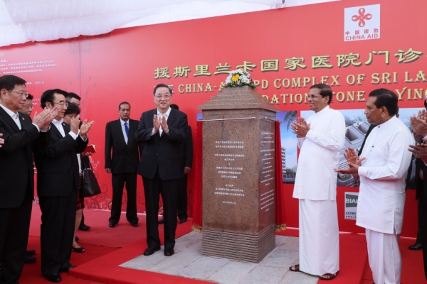 访问期间,俞正声与西里塞纳总统共同出席中国援建的斯里兰卡国家医院门诊楼奠基仪式。