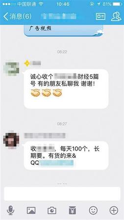 除了公开招聘写手,也有平台“约稿”的情况。马伟民说,一些平台的频道将一些做号者聚集在群里,频道编辑一旦发现有话题可以做,就会在群里“下单”,然后做号者“抢单”。编辑翻完牌子,接单的人则在最短时间内出稿,交稿。这也被视为这些平台对做号者的默许和扶持。