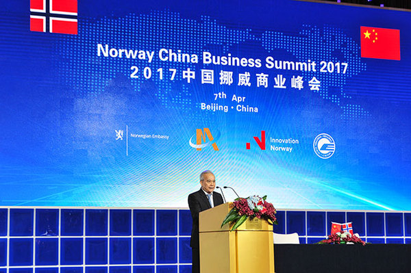 由挪威驻华大使馆、全国工商联、挪威创新署、中国企业联合会共同举办的“2017中国挪威商业峰会”全会于4月7日在北京举行,来自中国和挪威的900余位工商企业界人士围绕“创造可持续解决方案,构建更美好未来”主题进行了深入交流。挪威首相艾尔娜·索尔伯格与全国政协副主席、全国工商联主席王钦敏分别为全会致辞。