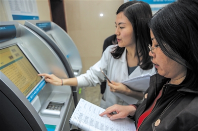 早上8时,在宣武医院门诊大厅,悬挂着不少红色横幅,宣传医改新政启动。在查费机前,一位女患者表示不明白医事服务费到底怎么收取,导医员告诉她,普通门诊医事服务费50元,医保报销40元,自付10元。