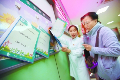 8日是医改实施首日。在东花市社区卫生服务中心,医护人员正在为就诊患者讲解药品价格公示内容。本报记者 方非摄