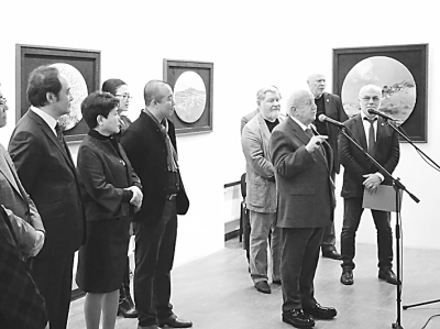 图为“丝路丹途”开幕式现场。左四为牟克,右三讲话者为俄联邦艺术科学院院长采列捷利。汪嘉波摄/光明图片