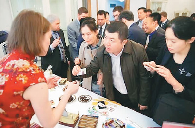 “这个巧克力很好吃,请问可以给我一张名片吗?以后好联系购买?!薄澳忝窍胍献鞯哪J绞鞘裁?零售还是走批发?”……推介会上,围绕着各种可口的俄罗斯美食和酒水,前来参观的嘉宾们一边品尝一边赞不绝口,同时也不忘抓住机会洽谈合作,了解货物进口的渠道及配送模式、是代理还是直接上商店货架等问题。