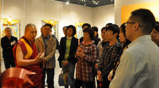 唐卡艺术展的作者嘎藏加措大师与学员们交流。