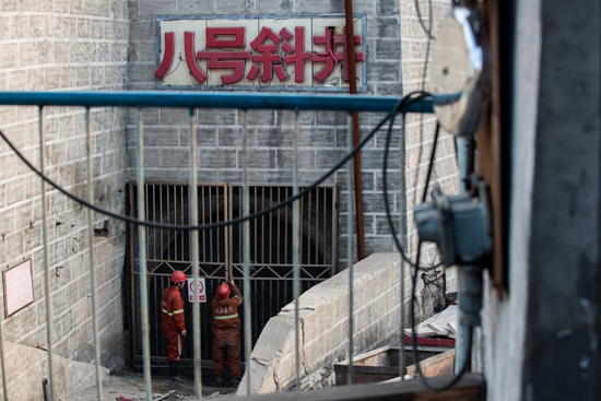 2016年10月19日,同家梁煤矿8号斜井井口,工人正在将井口关闭。图片均为王伟伟/摄