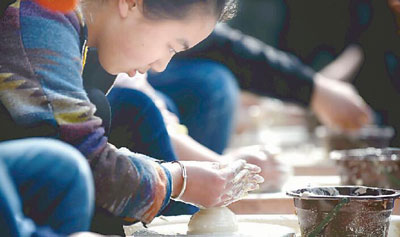 学生在学习陶艺制作。光明图片/视觉中国