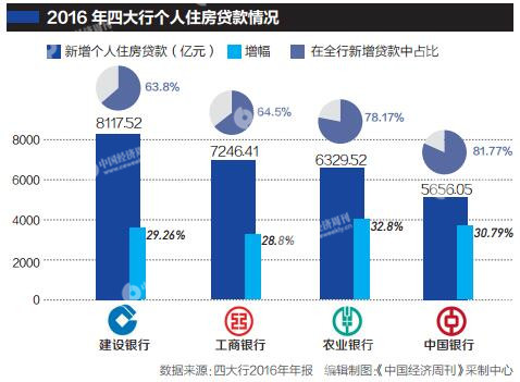 农业银行方面表示,主要是由于该行加强零售客户营销力度,加大个人住房贷款的投放力度。农业银行指出,在去库存方面,实施差异化的房地产业务发展策略,做大做强“农民安家贷”特色产品。2016年,这一支持农民进城购房的产品共发放1676亿元贷款。