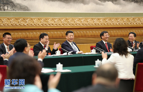 3月5日,中共中央总书记、国家主席、中央军委主席习近平参加十二届全国人大五次会议上海代表团的审议。 新华社记者兰红光摄