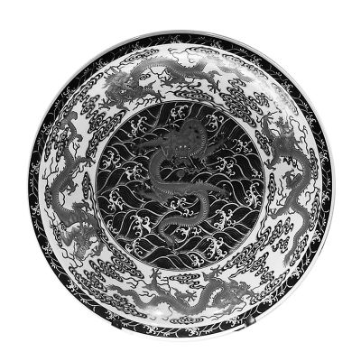 沈阳故宫收藏的金边青花五赤龙云水盘