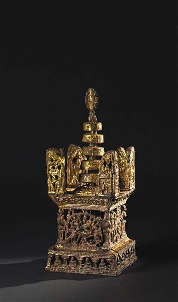 铅贴金阿育王塔。