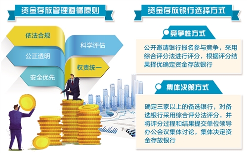 《指导意见》规定,除国家政策已明确存放银行和涉密等有特殊存放管理要求的资金外,财政部门和预算单位应当按照规定采取竞争性方式或集体决策方式选择资金存放银行。