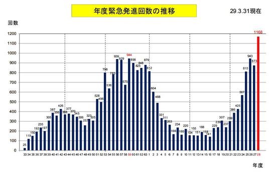 年度紧急起飞次数推移图(1958年至2016年)