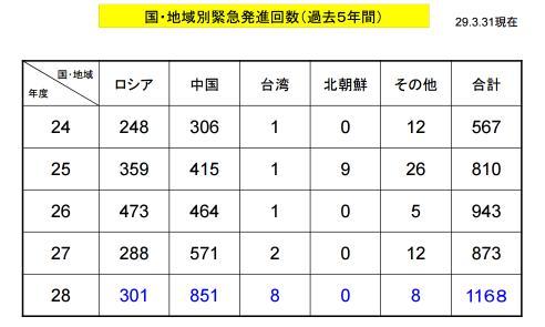 海外网4月13日电 据日本《产经新闻》报道,日本防卫省13日发表白皮书,称2016年航空自卫队战斗机对可能侵犯领空的外国军机紧急起飞的次数达到1168次,创历史新高。超过1984年原苏联战机活动频繁的冷战最高峰时期记录的紧急起飞次数944次。其中针对中国的紧急升空为851次,占7成以上,也达到历史最高。