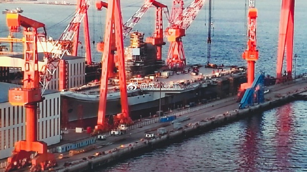 2016年9月完成飞行甲板安装吊装舰岛及雷达基座