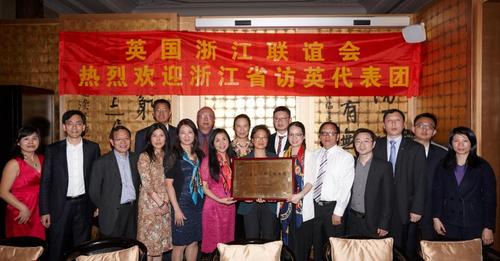 据英国浙江联谊会消息,近日,浙江省政府访英代表团赴英国浙江联谊会访问。浙江省副省长梁黎明、浙江外侨办副主任顾建新,英国国际发展部国务大臣麦克·贝茨勋爵、中国驻英大使馆侨务参赞卢海田等出席。