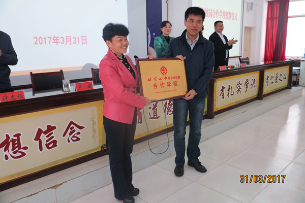 黄向伟向贞丰中学授予“北京四中数字校园合作学?!迸撇⒔不?。他指出,多年来,民盟充分发挥组织的智力和教育资源优势,持之以恒地关心国家的教育改革与发展。北京四中网校依托现代教育技术与现代教育理念,汇集了优秀教育教学资源,拥有众多北京四中一线名师提供的优秀微课,同时开发了适合教师课堂教学的教学软件和教学平台。近年来,四中网校与许多学校合作探讨“互联网+教育”,形成了将信息技术与课堂教学深度融合的富有成效的教学模式,可以让学生的学习更加有效,效率更加提升。我们愿意与贞丰教育同行一起,帮助同学们健康成长、走出大山、回报家乡。