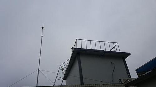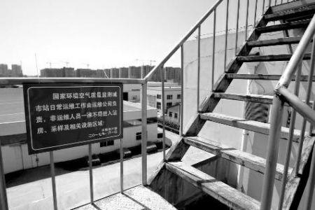 阎良监测站楼顶上悬挂着环保部的警示牌?;瘫?图