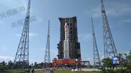 据中国载人航天工程办公室消息,天舟一号货运飞船与长征七号遥二运载火箭等飞行产品自2月中旬陆续进入发射场后,按照飞行任务测试发射流程,于4月 17日完成了总装测试等技术区各项工作。