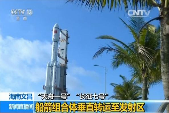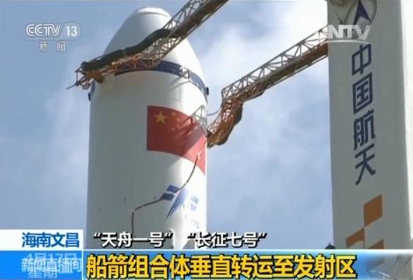 天舟一号飞行任务发射场区指挥部副指挥长 毛万标:船箭组合体转运到发射塔架,意味着这次任务进入到了最后的决战阶段,目前发射场一切工作,进展顺利,我们已经为最后的加注发射阶段做好了准备。