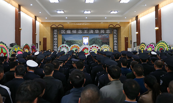 4月16日上午,河南漯河市公安局召陵分局案侦大队民警王清华的遗体送别仪式在漯河市殡仪馆举行。河南省公安厅政治部,漯河市、召陵区党政机关,市县区政法系统和社会各界群众代表千余人前来送别。