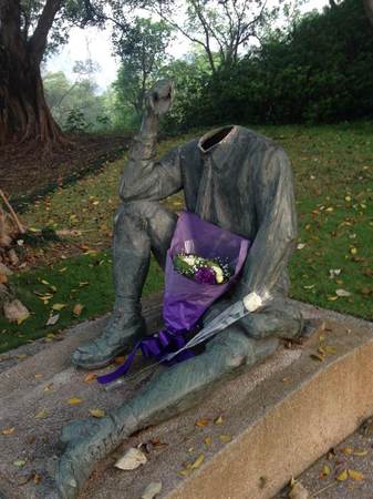 位于台湾乌山头水库内的日籍水利工程师八田与一铜像被“斩首”。(图片来源:台湾《中时电子报》)