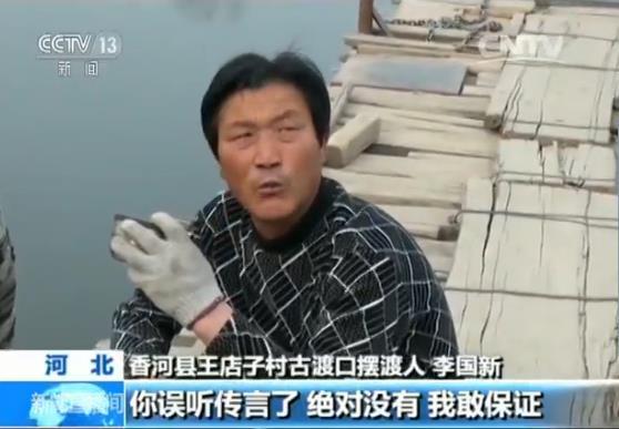 香河县王店子村古渡口摆渡人李国新: 你误听传言了,绝对没有,我敢保证。
