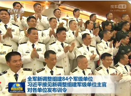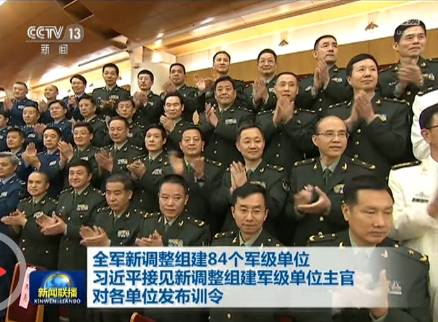 之后,习近平发布训令。他指出,党中央和中央军委决定,全军新调整组建84个军级单位。新调整组建的军级单位是新体制的重要组成部分,在维护国家主权、安全、发展利益中使命光荣、责任重大。