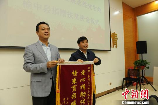4月17日,香港太平绅士、中国和平统一促进会香港总会执行会长姚志胜向甘肃榆中县捐赠100万元,支持当地的教育与公共事业发展。张宏 摄