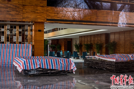 3月31日下午,北京市亦庄地区一家楼盘销售中心大门紧闭,楼盘的沙盘已被盖住。