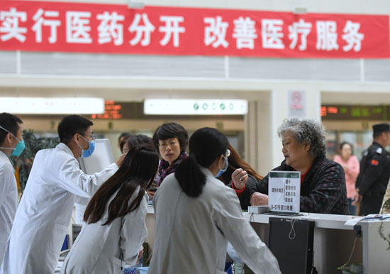 4月8日,医药分开综合改革全面实施,3600余家医疗机构全部取消药品(不含中药饮片)加成和挂号费、诊疗费,设立医事服务费,医疗服务价格也进行了“有升有降”的调整。图为北京协和医院。视觉中国供图