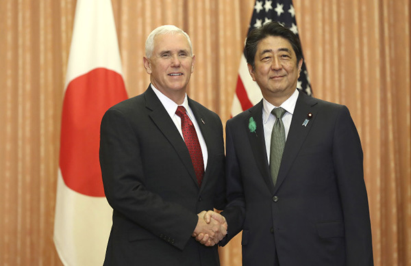 美国副总统彭斯4月18日起访问日本,他就朝核问题再次重申在韩表态,称对朝“战略忍耐”时代已结束,且强调“所有选项都在台面上”。但彭斯又释放“善意”,特朗普决心和中日韩等盟友合作,找出一个和平解决的方案。
