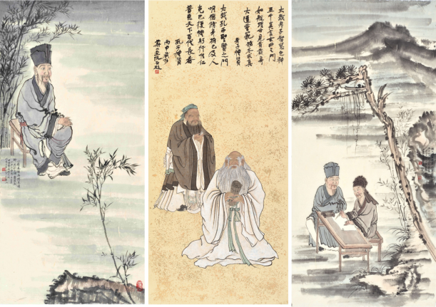 杨华山《子猷赏竹图》《圣贤图》和《松荫高士图之一》国画作品