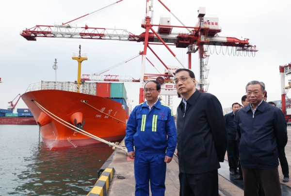 4月19日至21日,中共中央政治局常委、国务院总理李克强在山东威海、济南考察。这是4月19日,李克强在威海港考察。新华社记者 姚大伟 摄