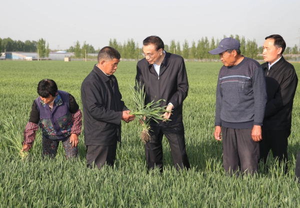 正值谷雨时节,李克强走进麦田察看长势,详细询问农资和粮食价格及收入情况,他说,发展现代农业、增加农民收入,要调整结构、改良品种,推广订单农业,促进精细化生产。国家也要完善政策,?;ぶ至概┟窭?。李克强鼓励大家发展多种形式的适度规模经营,并把农业与工业结合起来,在融合发展中做强农业。