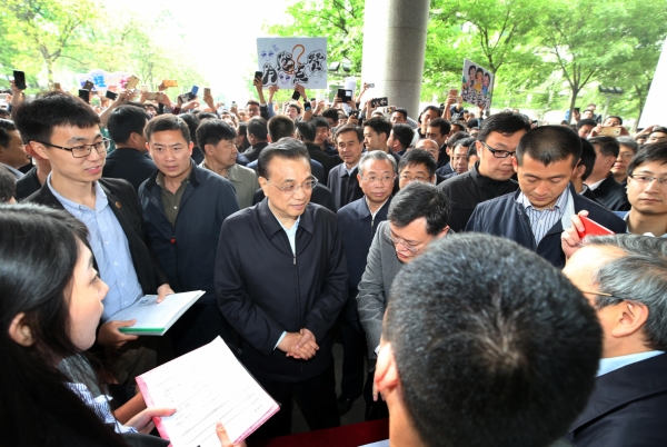 4月19日至21日,中共中央政治局常委、国务院总理李克强在山东威海、济南考察。这是4月21日,李克强在山东大学考察。新华社记者 姚大伟 摄