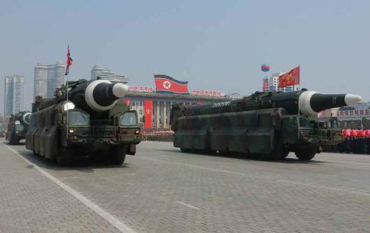 今年4月17日太阳节,纪念金日成诞辰105周年,朝鲜阅兵式显示了一批新型导弹武器。被视为对近日来美国武力威胁的回应
