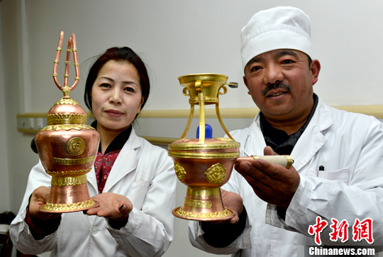 资料图:改良后的藏医外治医疗器具。中新社发李林摄
