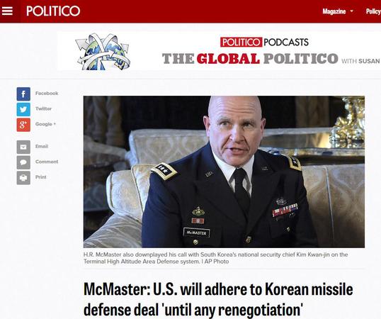 美国家安全顾问有意重新协商“萨德”费用 否认韩方报道