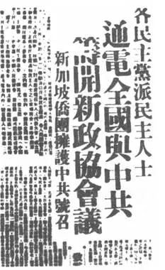 1948年5月5日,各民主党派、无党派民主人士发出通知,积极拥护中共中央的“五一号召”