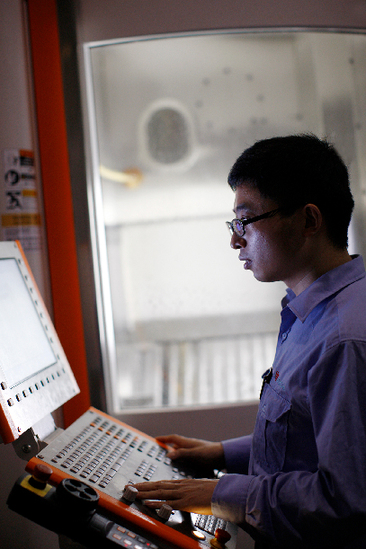 部门岗位调整后,陈闰祥竞聘成为数控编程员?!拔业墓ぷ骶褪前咽赝贾阶怀苫部梢允侗鸬拇?,让机器按照编程加工出零件”。这个工种要熟悉机械加工的工艺路线,专职数控编程要具备十年以上机床操作经验。如果经验不足编程参数不合理,极容易导致产品超差变形。“任何一种错误都是我们所不能接受的。所以首先要细心。不出错是最基本的要求?!?/p>
