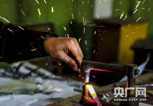 制作铁画前需“趁热”打铁 央广网记者王晶 摄