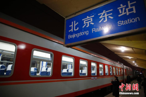 资料图:北京东站开往燕郊的临客K7783次列车。王骏 摄
