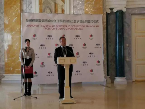 宏福集团董事局主席黄福水先生出席签约仪式并发表了热情洋溢的讲话:作为投资方的北京宏福集团和圣彼得堡华人国际集团,两家具有相似性格的企业各自安好20余年,在“一带一路”的机缘下,在双方团队的共同努力中,毫无意外地达成了合作共识。宏福集团将集结、统筹以往在旅游度假、健康养老、文化创意产业的成功经验,与华人集团合力,将宏福新城打造成为包含候鸟养老、休闲旅游并具中俄文化内核的综合项目,力争将其建设成为中俄工程精品项目,以实际行动贯彻中国“一带一路”合作精神,构筑中俄企业合作下的圣彼得堡游、住、旅、居新图画。