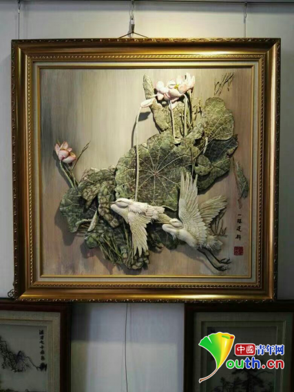 “鸟身体两侧的羽毛不一样,迎风的一面羽毛少,就是为了控制空气动力,减少阻力,不让翅膀折断?!闭饩褪且逗瞎ひ站畹木髑?,在他看来,做鸟要逼真,必须学空气动力学,了解了结构,才能塑造出栩栩如生的作品。这样千百次的反复观察和琢磨,让他以铁画工艺塑造翅膀的技术炉火纯青。他获得安徽省工艺美术博览会金奖的代表作——彩色铁画《一路连科》,上面塑造的就是两只白鹤并肩齐飞,搭配着荷花与荷叶,翅膀塑造得细腻而逼真,每根羽毛似乎都能触碰到,恰到好处的色彩则是对传统铁画的创新,将翅膀翕动的动态拿捏得精确巧妙。