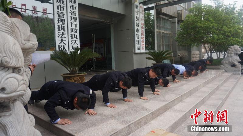 江苏睢宁城管局对不尽责队员罚做俯卧撑