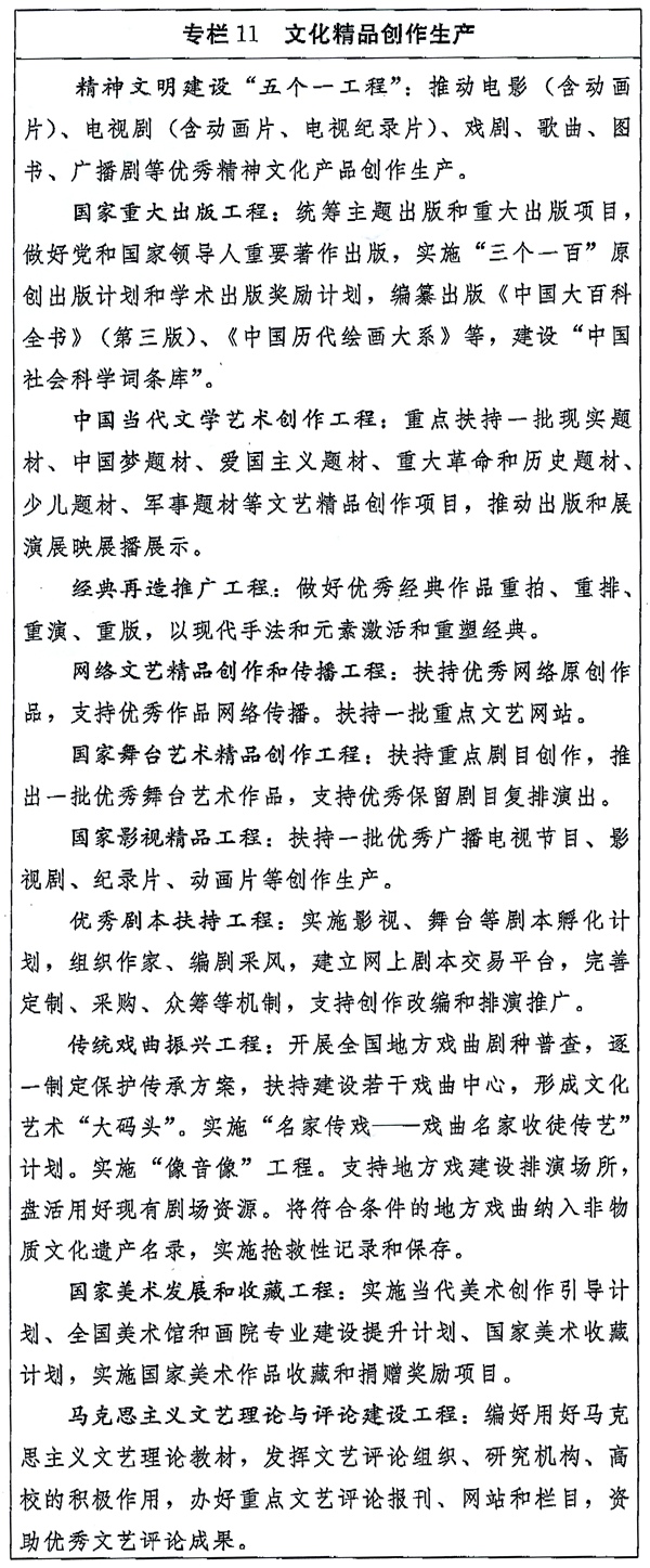 中共中央办公厅 国务院办公厅印发《国家“十三五”时期文化发展改革规划纲要》